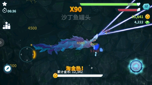 4、经典的鲨鱼对抗玩法,属于个人吞噬类型的模式,玩家需要吞噬其他鱼群,同时躲避体型比自己大的海底生物。