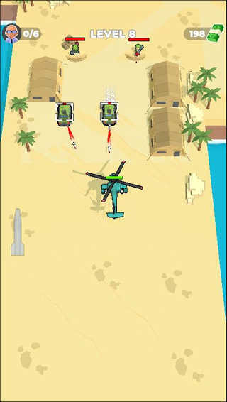 2、让人上瘾的攻击快感,解锁并升级更多直升机,挑战飞行任务,顺利完成比赛