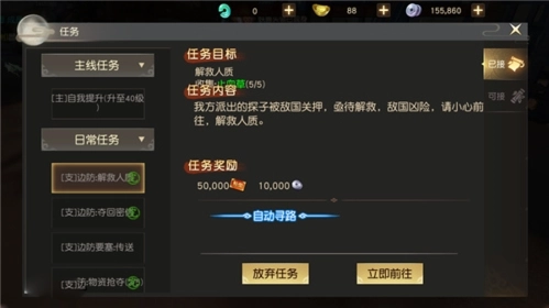 领取并完成任务可以帮助你更好更快的成长,点击左边任务栏即可自动寻路至任务点。