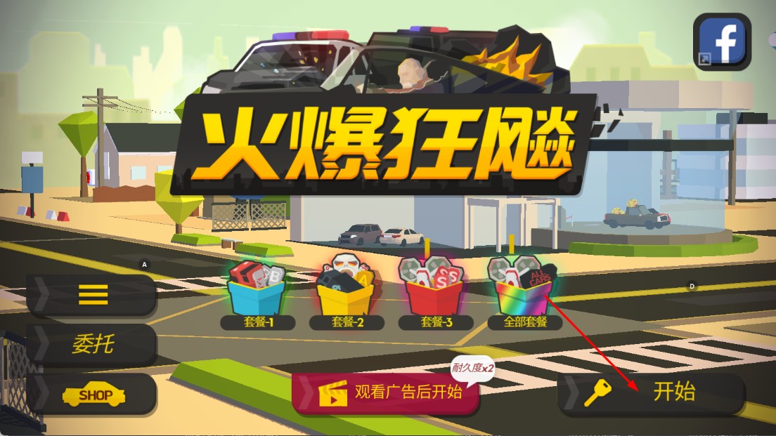 1、点击【开始】,进入《火爆狂飙》游戏,开启驾驶挑战。