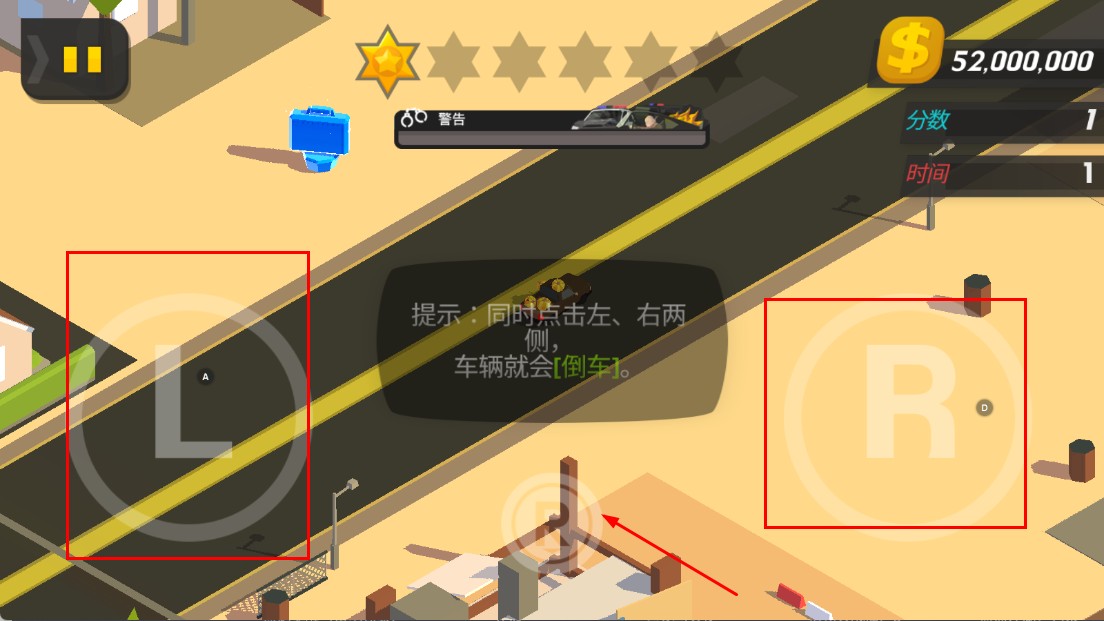2、驾驶时,按左侧“L”和右侧“R”按键,控制车辆转向,同时点击两侧可让车辆倒车。