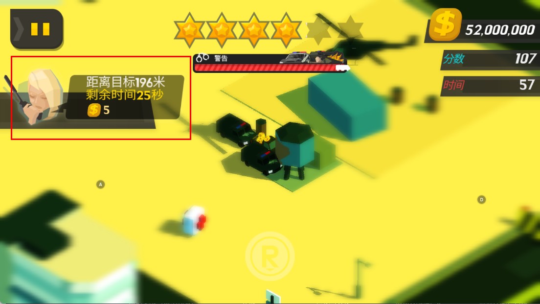 3、关注屏幕提示的距离目标剩余距离和剩余时间,合理规划行驶路线,躲避追捕。