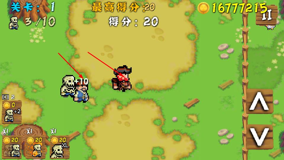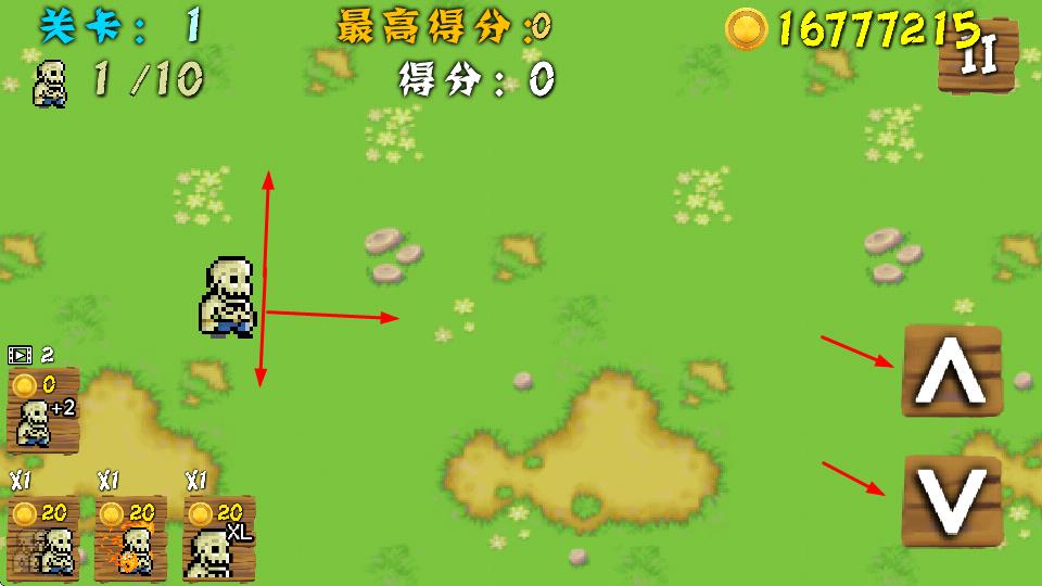 2、通过右侧上下箭头按钮控制僵尸移动方向,灵活调整僵尸位置,为后续战斗等操作做准备。