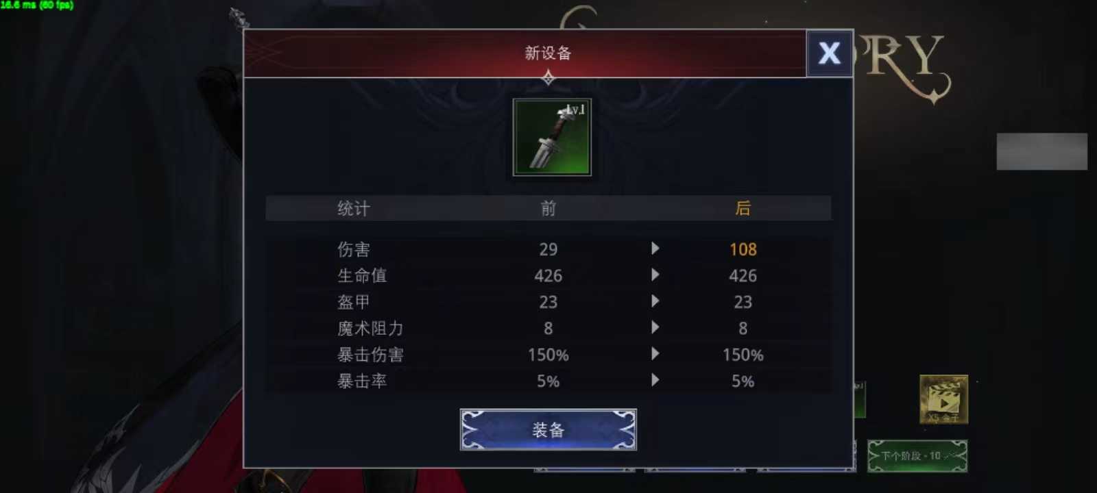 3、通过这段教程以后,可以获得新设备,玩家可以进行【装备】;