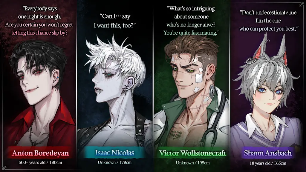 邂逅吸血鬼、狼人、亡灵和古代医生等魅力男性角色,自由完成支线剧情,提升角色互动和情感深度