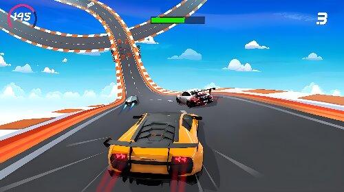 1.在经典的赛车竞速游戏基础上添加了飞行的元素,赛车到达一定等级激活飞行功能之后,不仅可以在赛道上快速疾驰,还可以在天空中飞行。