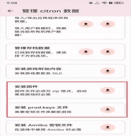 2、进了管理页面之后,注意啦:想导入游戏的话,得先装好固件和密钥。看到右边那个按钮没?点它就对了;