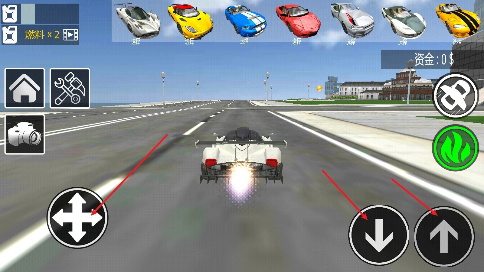 进入游戏后,右侧的箭头按钮分别对应后退与前进功能,左侧的摇杆则用于控制方向转向。