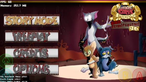 1、打开周五夜放克猫和老鼠地窖秀模组手机版,找到“STORY MODE”选项并点击,然后点击右下角的A键开始游戏。