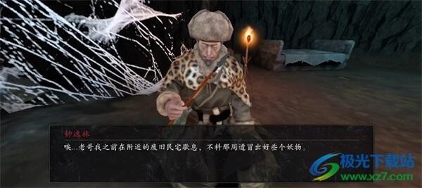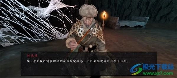 1、现在山洞中与猎人钟逸林对话开启任务。