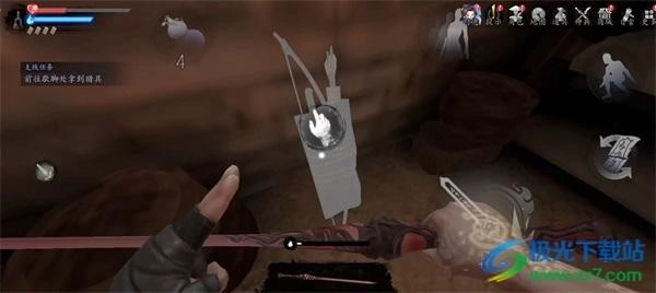 4、进入小屋后就能拿到弓,传送回山洞对话就能完成任务。