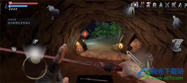 对话结束后就能开启任务,从右侧的洞口可以离开山洞。