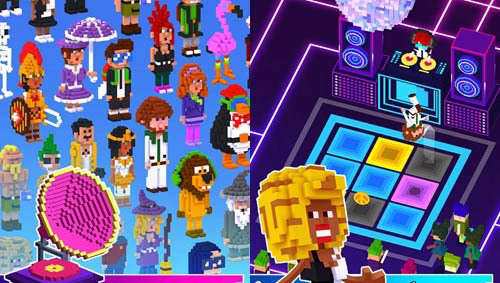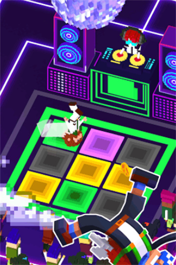 2、别具一格的像素画风搭配荧光撞色设计,烘托出舞池的热烈氛围。