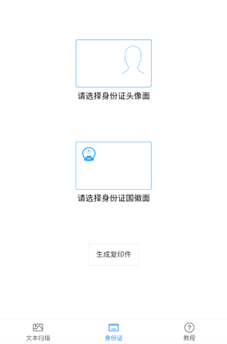 3、接着点击【请选择身份证国徽面】,上传国徽页后,再点击【生成复印件】。