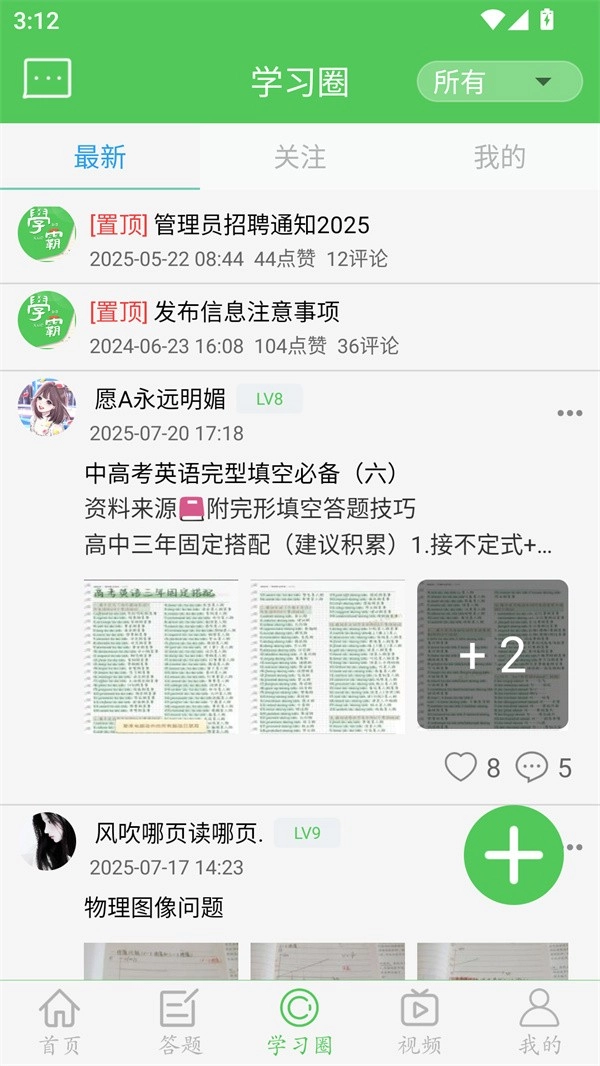 3、在“学习圈”页面里,用户既能浏览其他用户分享的学习技巧与资料,也能协助其他用户解决难题,还可以根据自身需求进行投稿。