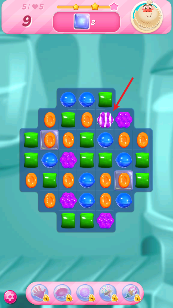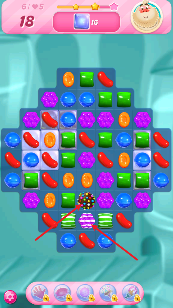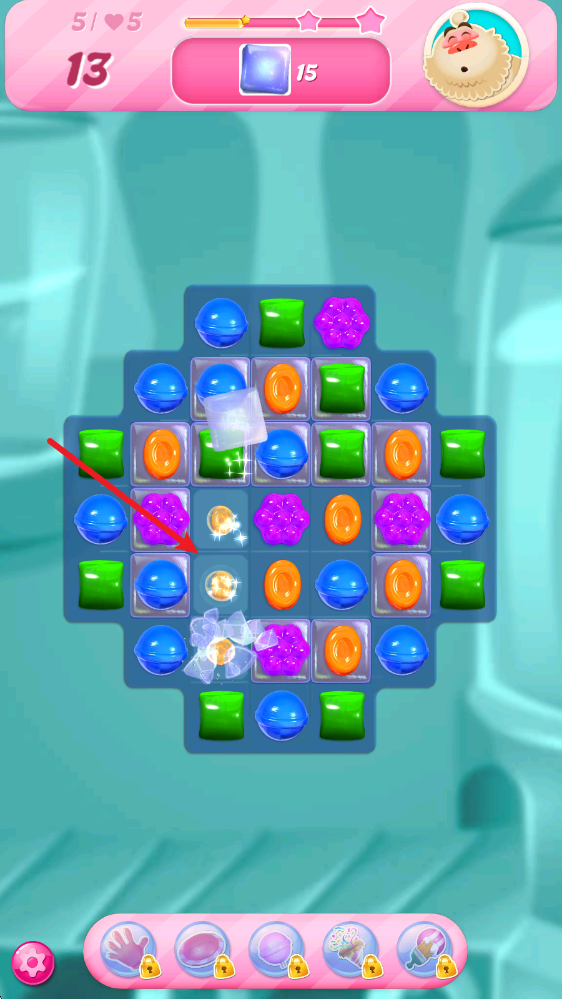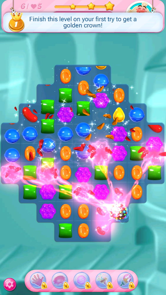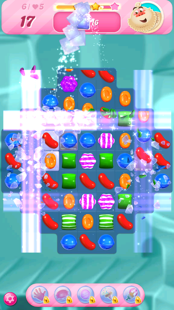 4、触发特殊糖果后会产生特殊效果,比如通过5个糖果合成的道具,能够瞬间清除地图上某一种颜色的糖果。