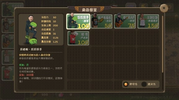 1、瓜瓜投手:可以投掷西瓜对前方的敌人造成伤害。