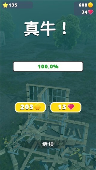 3、达成拆家目标可获得金币奖励,利用金币能提升武器威力与角色速度,进而挑战更复杂的房屋场景。通过当前关卡后,即可解锁下一关的地图。