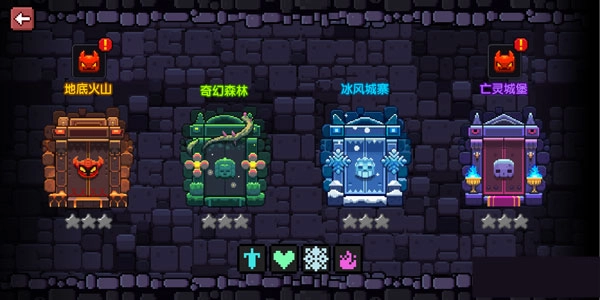 秘境副本是获取装备的主要渠道,每一层秘境包含地底火山、奇幻森林、冰风城寨与亡灵城堡四张分地图,其怪物属性分别对应火、水、木以及杂属性(即三种属性的怪物皆有),玩家若使用针对性的武器,战斗效率将大幅提升!秘境副本的新层数会随着玩家冒险等级的提升逐步解锁。