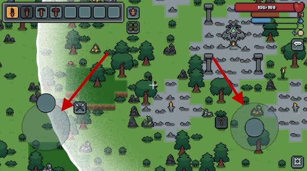 1、首先进入游戏后,左侧的摇杆用于控制方向,右侧的摇杆则负责视角方向的调整。
