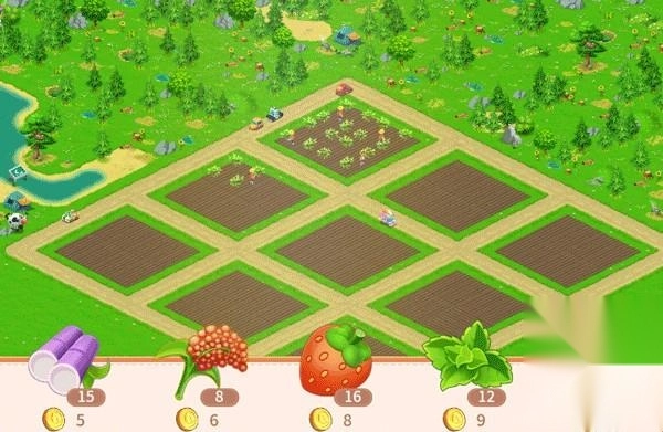 1、点击庄园里的任意一块空地,会弹出农作物选择界面;长按选中的农作物并拖拽到空白土地上,或是在需要种植的所有地块范围内滑动,种植操作就会在滑动覆盖的空白土地上完成。