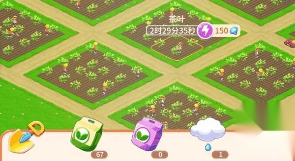 4、每种作物在不同生长阶段会呈现出不同的形态特征,以此可进行区分。当作物成熟后,点击成熟的农作物会出现一把镰刀,手持镰刀向所有成熟作物滑动,就能完成收割操作。