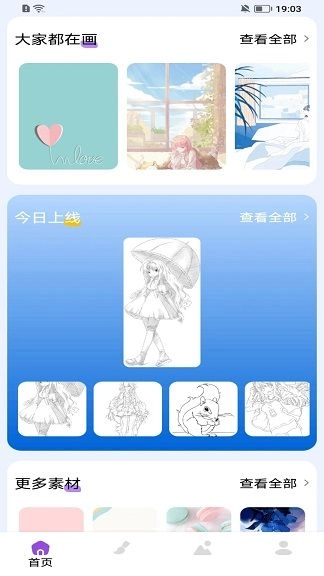 九色绘画板是一款自由绘画应用,用户可以在这里使用各类画笔工具创作精美图画。借助丰富的线稿模板,你能轻松绘制出漂亮的线稿,通过反复临摹线稿提升绘画技艺;完成的线稿还能进行上色,创作出更多精美的艺术作品,快来体验吧!