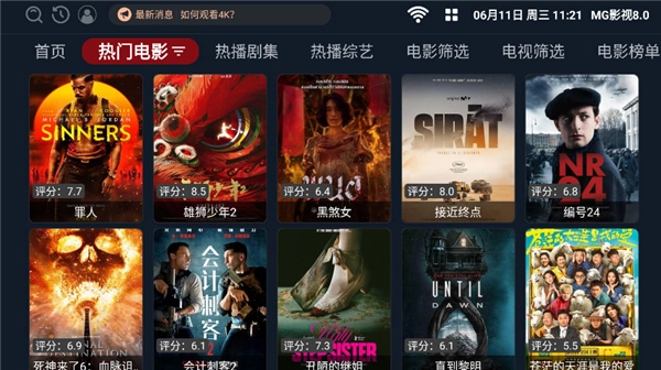 1、首先在本站下载并安装MG影视,安装完成后打开应用进入主界面。