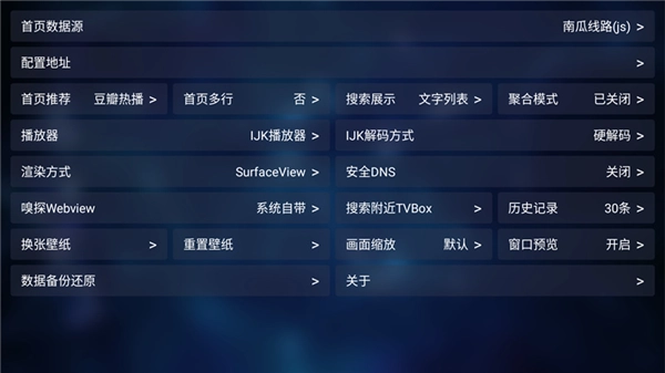 3、之后我们也能够借助设置功能,对首页数据源、配置地址、渲染方式、数据备份与还原等各项参数进行调整。