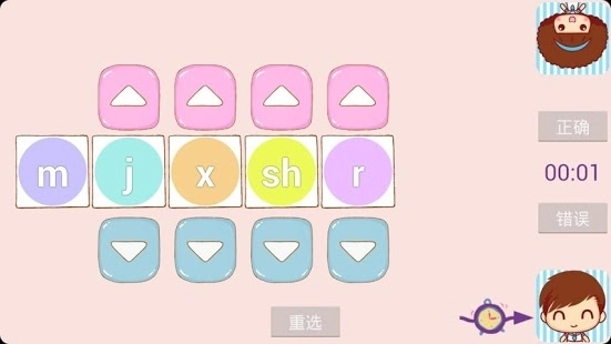 操作示例:若要组词“手机”,点击对应的声母按钮就行,要是选错了可以用“重选”功能。