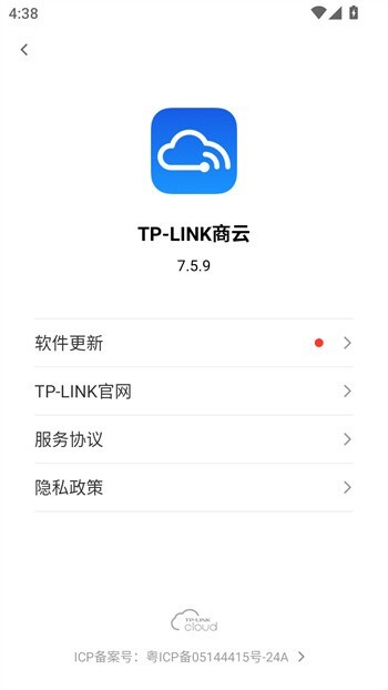 5、在“我的”页面下方设有相关选项,您可以通过这些选项查看TPLink商云App的服务协议与隐私政策。