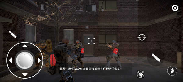 4、进入游戏后,左摇杆用于操控角色移动,滑动屏幕可调整视角方向;左右两侧设有子弹按钮,十字星按钮能实现瞄准功能,右下角的人物图标则可切换不同的射击模式。