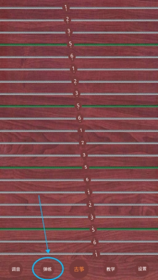 2、可进入古筝弹练曲库,点击弹练开始联系