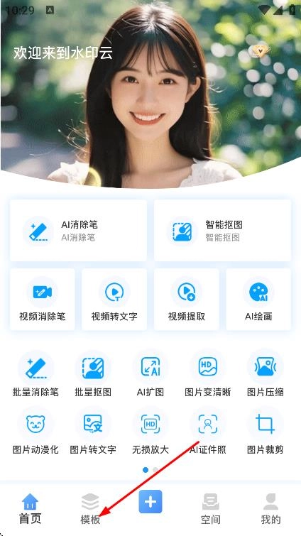 1、在首页,点击模板,进入模板页面。