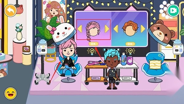 7、为前来打理发型的顾客设计造型,将角色拖动至椅子上。