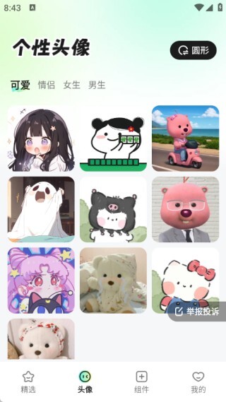 2、头像页面里有不少精致好看的头像,还划分了情侣、女生、男生等不同类别。