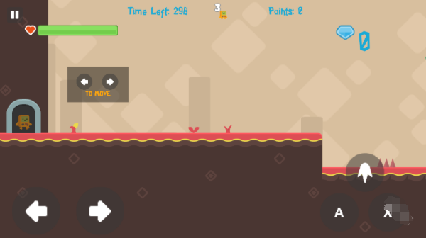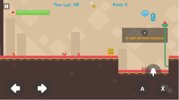 4、碰到有障碍物的地方,点击A键就能跳跃,接着在跳跃过程中点击对应的方向箭头就能前往目标位置。