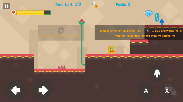 5、遇到有怪物时可以点击A跳跃然后踩住对方;