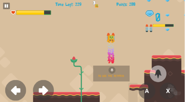 6、捡到火箭喷射装备后点击火箭图标即可进行飞行;