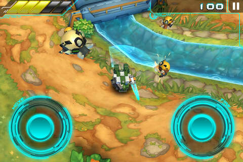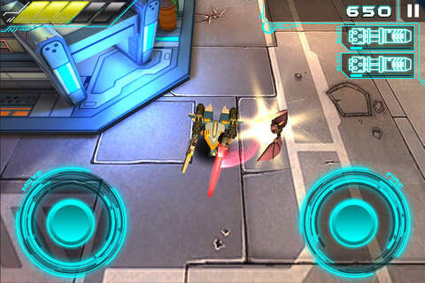 游戏运用双摇杆控制模式,玩家在游戏里只需击倒全部敌人,获取金币用以升级自身装备,把自己打造成最强机甲。