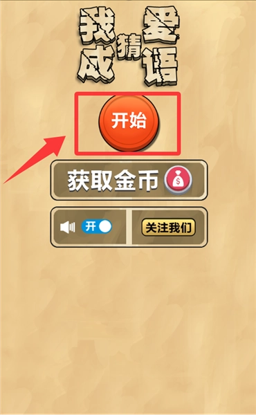 在主界面找到那个被红色方框框起来的“开始”按钮,点击它就能开启你的成语之旅啦。