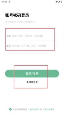1、打开软件,进行账号登录,如果是未注册的账号会自动创建账号;