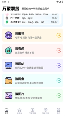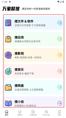 万象聚搜里的操作简单易上手,在搜索栏输入自己所需的资源就能快速获取,根据不同的需求提供海量的资源,全部资源都能免费获取,为大家的生活娱乐、学习工作等提供更多的便捷服务。
