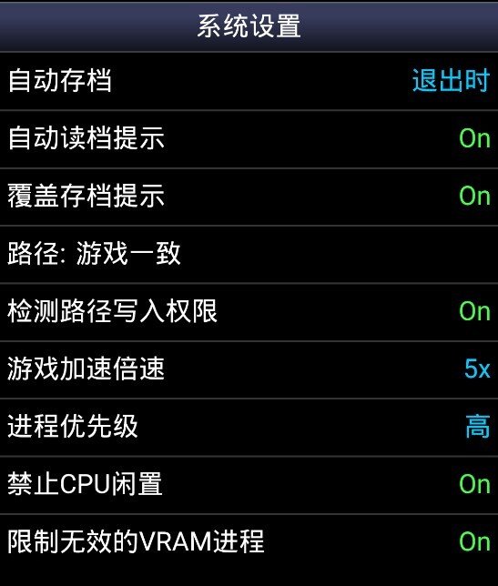 3、在默认设置状态下,部分游戏的菜单可能会出现中文乱码的情况,但这个问题是可以完美解决的。(具体操作步骤:进入设置→系统设置→找到最后一项“限制无效的VRAM进程”→将其关闭,然后重启模拟器,即可完美解决乱码问题)