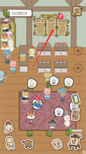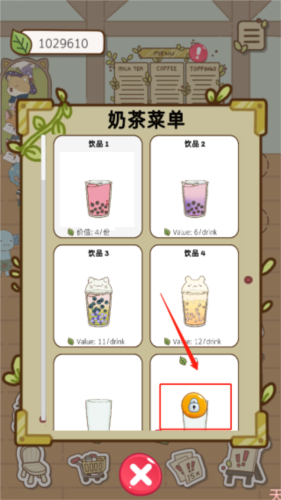 1、进入游戏点击图示奶茶菜单墙