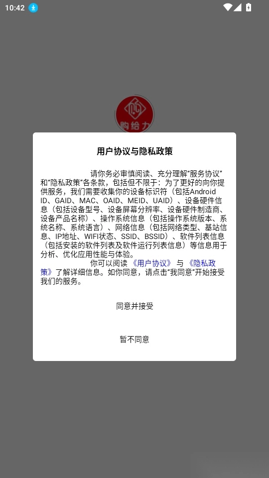 1. 打开软件后阅读“用户协议和隐私政策”,点击“同意并接受”按钮进入