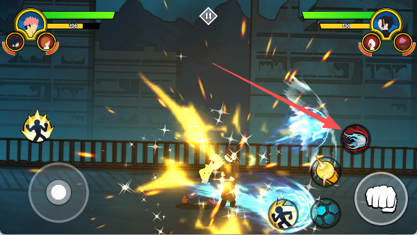 3.右边拳头按钮为普通攻击,连按可进行连击
