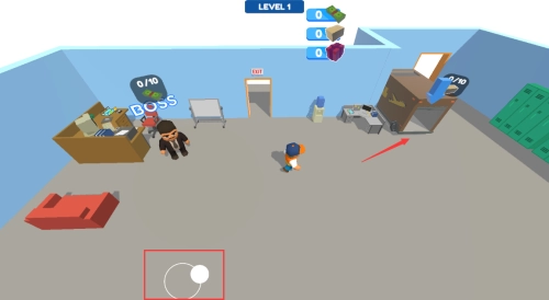 点击BOSS旁箱子,收集10个完成关卡目标。