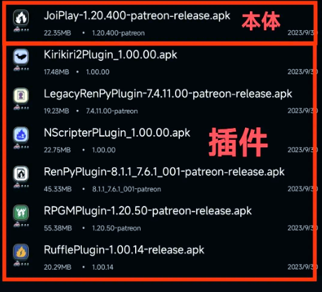 2、请先安装JoiPlay模拟器的主体程序,之后再依次安装需要用到的插件。