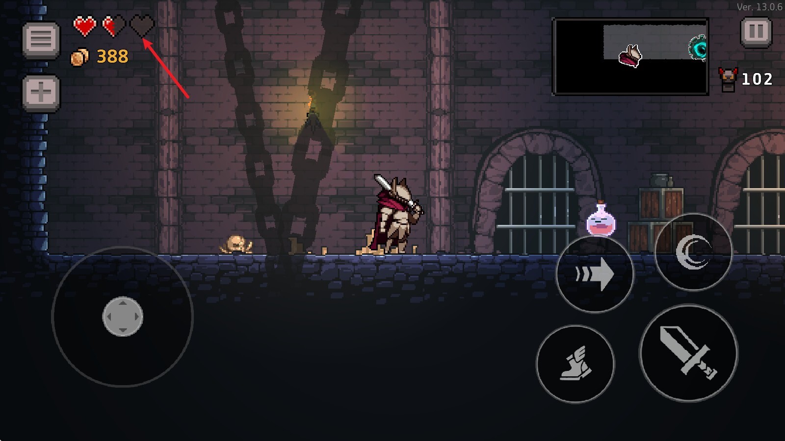 4、左上角是自己的生命值,归零后就会结束游戏。